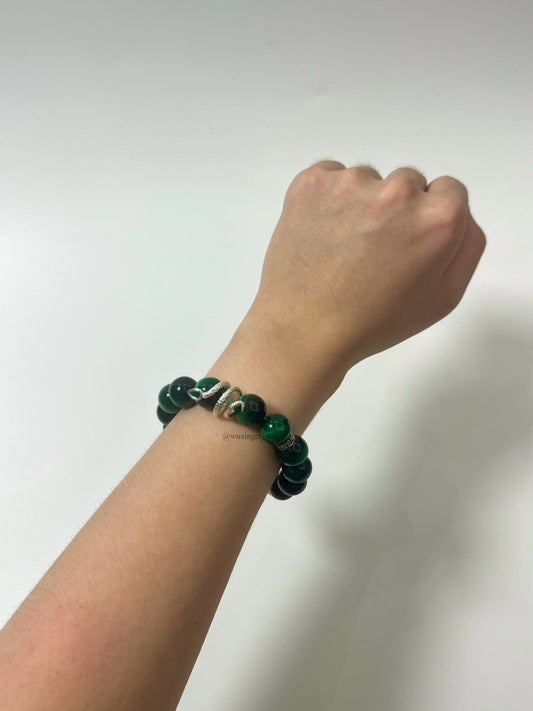 Malachite Bracelet with Silver Snake Design