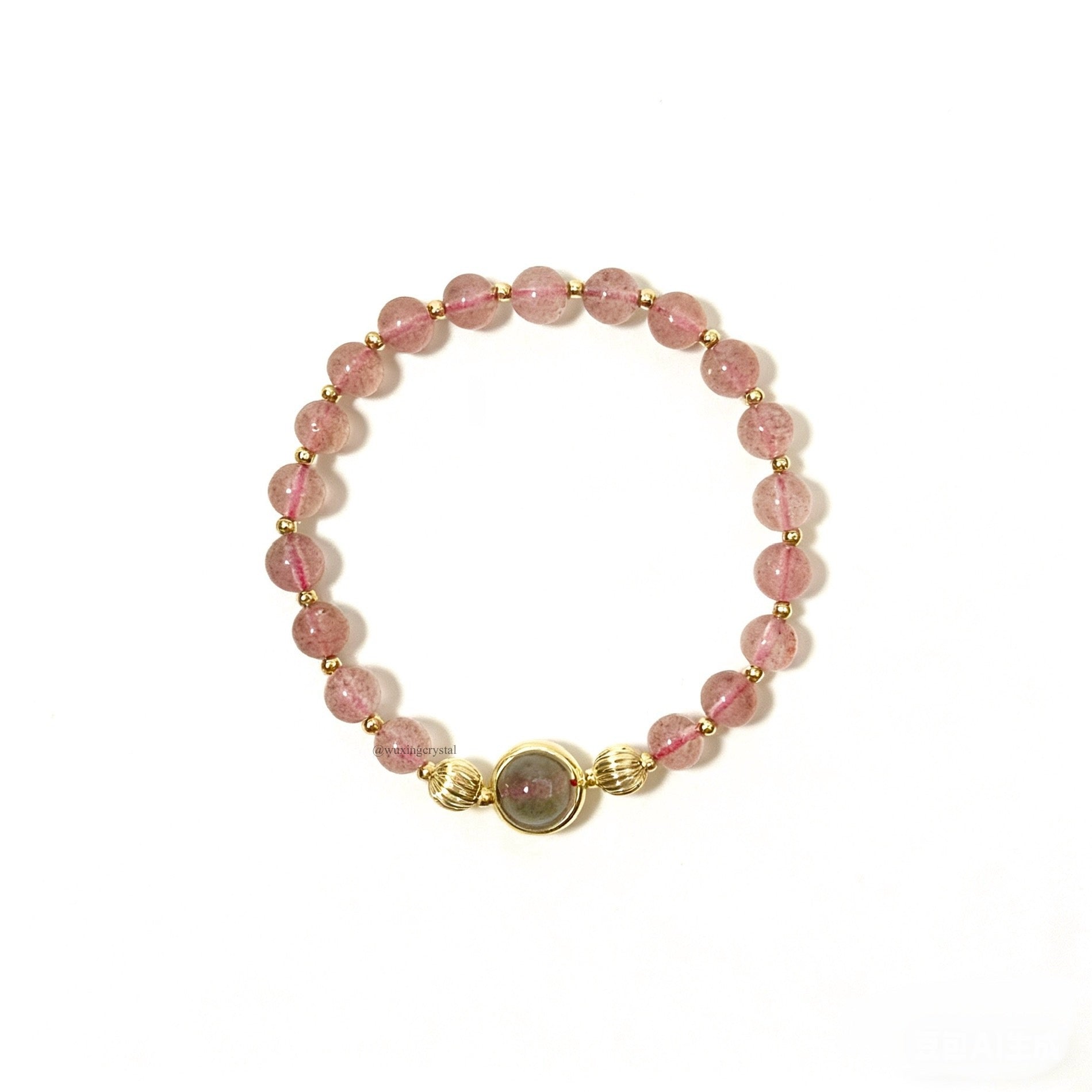 Strawberry quartz radiates love, joy, and youthful energy, while moonstone brings intuition and emotional balance. With its sweet yet refined design, this bracelet is ideal for daily wear or as a thoughtful gift to someone special.